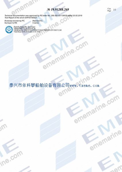 资料主题:220kN electric lifeboat winch with RS certificate 浏览次数:[ 24 ]