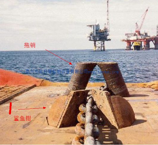 鲨鱼钳主要使用在拖船,锚处理拖船上。和拖销配合使用。