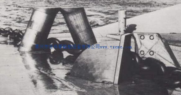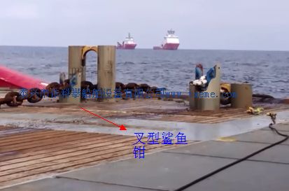 钳之间。不用时,落下与甲板平齐。两爪之间有一个顶销,可以将下垂的链索