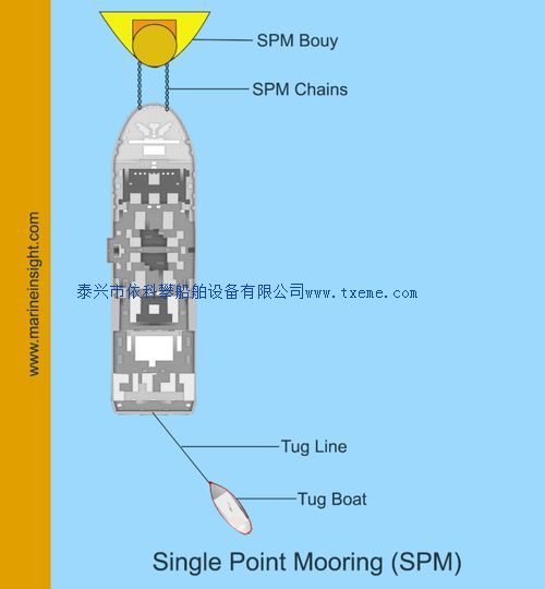 单浮标或单点系泊系统:通常,不能接近港口和码头的较大船只停泊在港口边界或庇护处,并通过单点或单一浮标系泊进行货物转运。浮标的基本原理是保持船舶相对于浮标的位置稳定,同时允许船只摆动到风和海上。通常在船尾设有拖船以将船舶固定在固定的位置与浮标的距离和距离。将浮标定位在与其连接的四个锚的中心,将其固定。船只通过单个链条或二个固定在船头上的救生圈快速制成浮标。一般来说,在接近单点或单个浮标系泊时,天气是确定是否停泊船只的主要标准。镇压低海拔低于15kts的平静海域被认为有利于采取措施。强潮流出现限制停泊和停泊的时间间隔。前进方式通常要慢,而同时以较小的角度接近浮标,然后在浮标信使绳中逐渐拖曳,并以短时间间隔使用发动机踢向浮标缓慢移动以控制和维持当距离浮标约150-200米的时候,系泊缆车连接在船上。为了取消起飞,链条从弓形止动器上释放出来,发动机上的短踢将会使弓向右舷旋转右旋螺旋桨,从而清除浮标的船只。拖船的援助也可以被起诉,以撤回船只并清除浮标。了解更多关于单点系泊在这里。