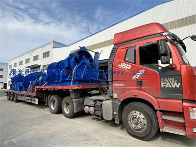 2台58mm液压锚绞组合机和4台58mm滚轮闸刀掣链器发往安徽池州鑫安造船厂!